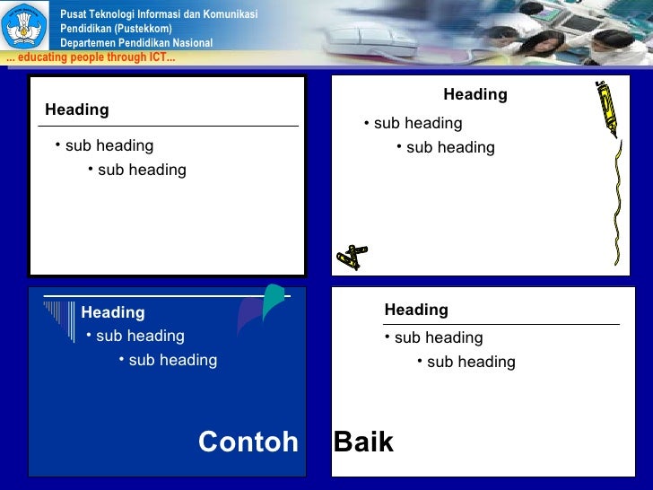 - 39. Heading <ul><li>sub heading </li></ul><ul><ul><li>sub heading </li></ul></ul>Heading <ul><li>sub heading </li></ul><ul><ul><li>sub heading </li></ul></ul>Heading <ul><li>sub heading </li></ul><ul><ul><li>sub heading </li></ul></ul>Heading <ul><li>sub heading </li></ul><ul><ul><li>sub heading </li></ul></ul>Contoh Baik
