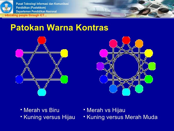 - 45. Patokan Warna Kontras <ul><li>Merah vs Biru </li></ul><ul><li>Kuning versus Hijau </li></ul><ul><li>Merah vs Hijau </li></ul><ul><li>Kuning versus Merah Muda </li></ul>